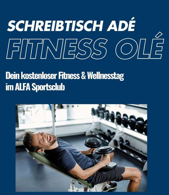 Im Rahmen unserer Firmenwoche haben Sie die Möglichkeit, den Alfa Sportsclub einmalig und unverbindlich zu testen.